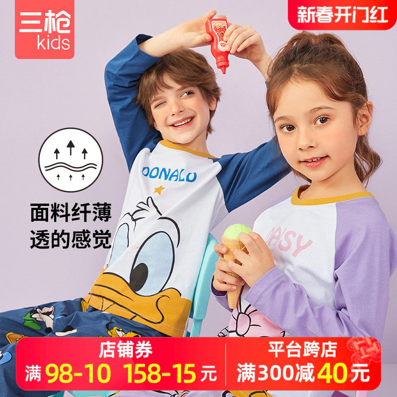 三枪男童薄款秋衣秋裤套装弹力棉睡衣长袖 青少年卡通内衣春秋款