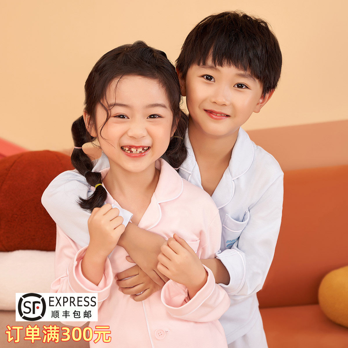 三枪儿童家居服女童纯棉睡衣男童舒肤棉少儿圆领长袖长裤家居服
