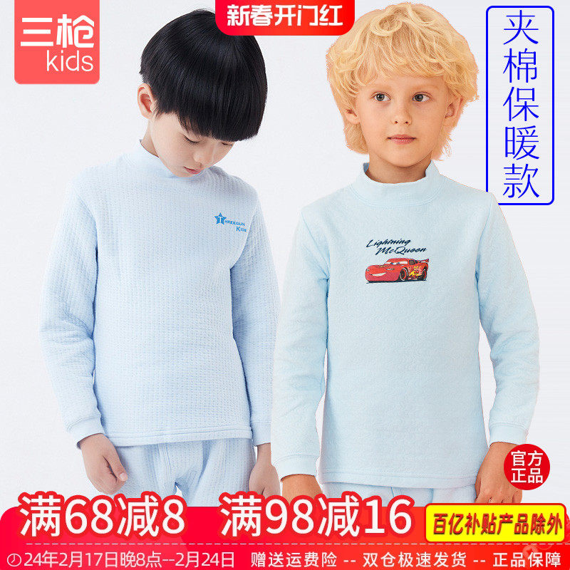 三枪儿童男赛车半高领夹棉A类宝宝长袖睡衣学生秋衣秋裤内衣套装