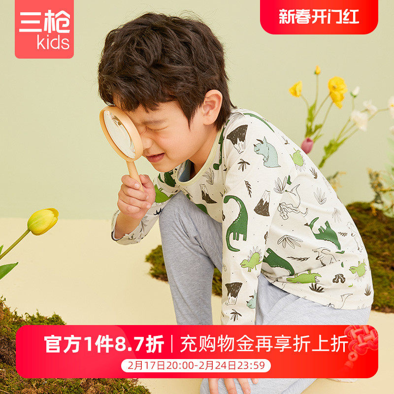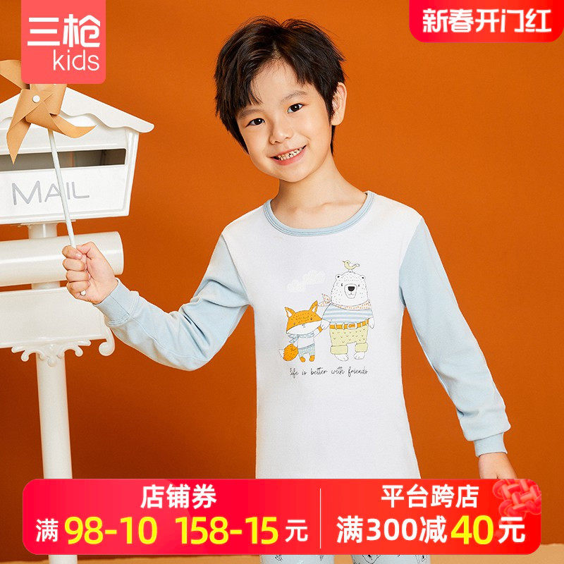 三枪儿童睡衣男童内衣套装秋衣套装全棉保暖衣家居服棉毛衫童装