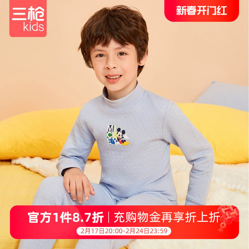 三枪儿童暖棉男童半高领内衣套装秋冬睡衣秋衣保暖裤保暖内衣