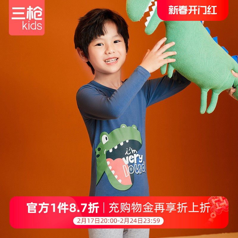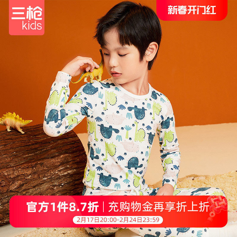 三枪儿童睡衣秋季内衣套男童秋衣秋裤加厚保暖莫代尔棉内衣套装