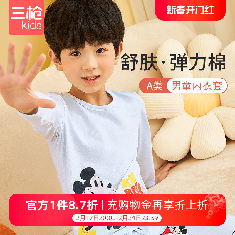三枪儿童内衣套装男童加厚秋冬纯棉秋衣睡衣保暖秋衣秋裤保暖内衣