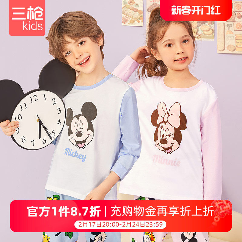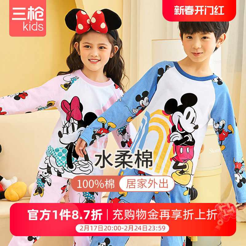 三枪儿童家居服套装男女童空调服迪士尼米奇米妮纯棉睡衣短袖短裤