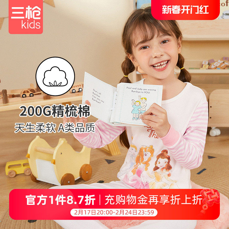 三枪儿童睡衣女童内衣套装纯棉秋衣秋裤家居服全棉保暖内衣棉毛衫