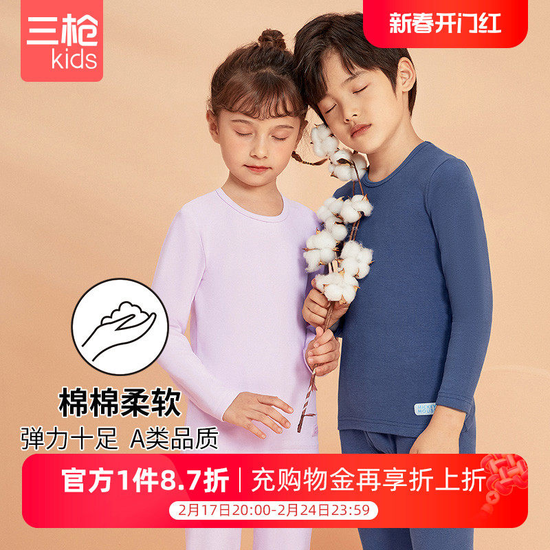 三枪儿童秋衣秋裤秋冬睡衣男童纯棉内衣套装女童保暖内衣棉毛衫裤