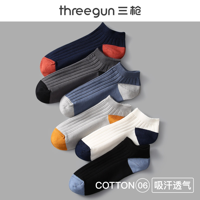 三枪男士袜子男短袜棉袜吸汗透气秋冬新品防滑不掉跟短筒运动船袜