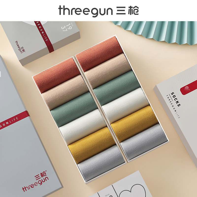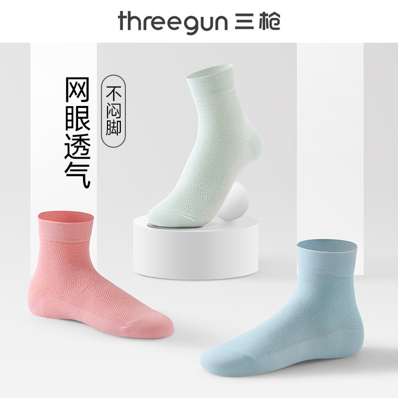 三枪纯棉袜子女中筒袜透气消臭干爽薄款纯色无骨短筒袜春秋潮棉袜