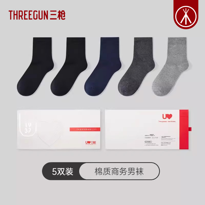 三枪袜子男中筒纯棉袜子防滑透气棉袜春秋简约商务款纯色全棉男袜
