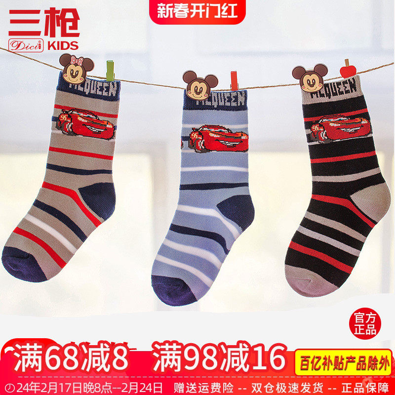 【3/6双装】三枪迪士尼儿童棉袜小学生精品少儿男童女孩中筒袜子