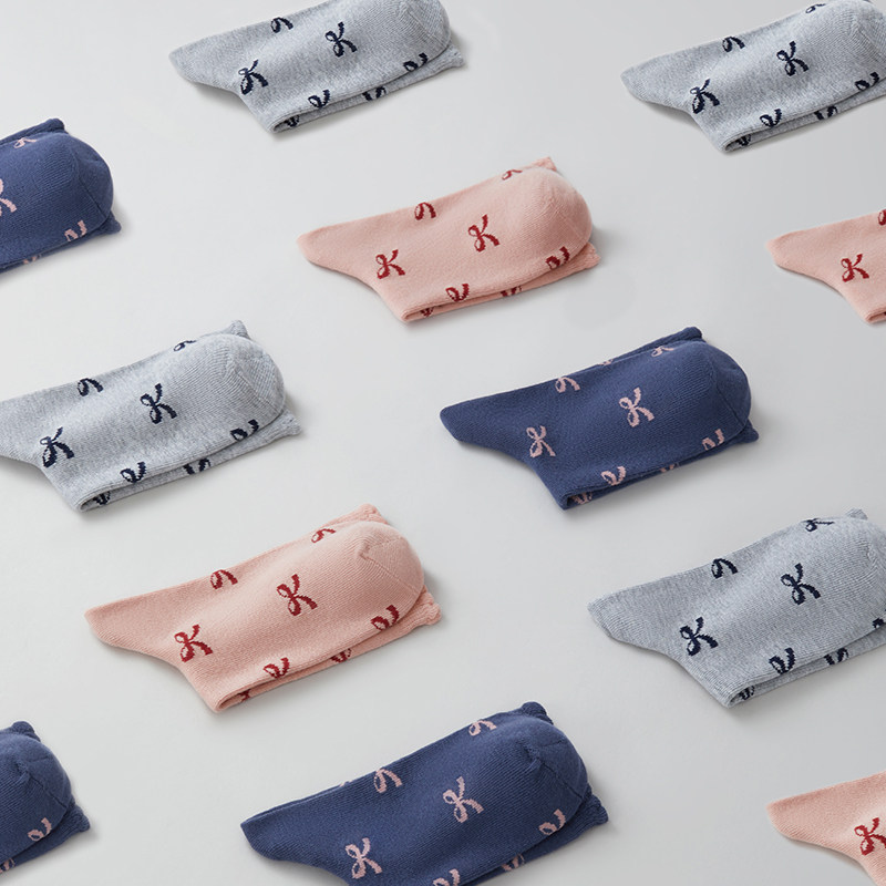 三枪袜子女中筒袜3A抑菌春秋季可爱蝴蝶结女士无骨棉袜秋冬长筒袜