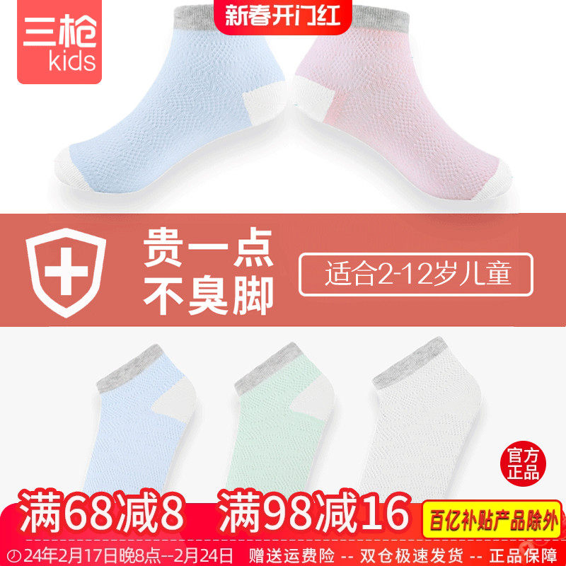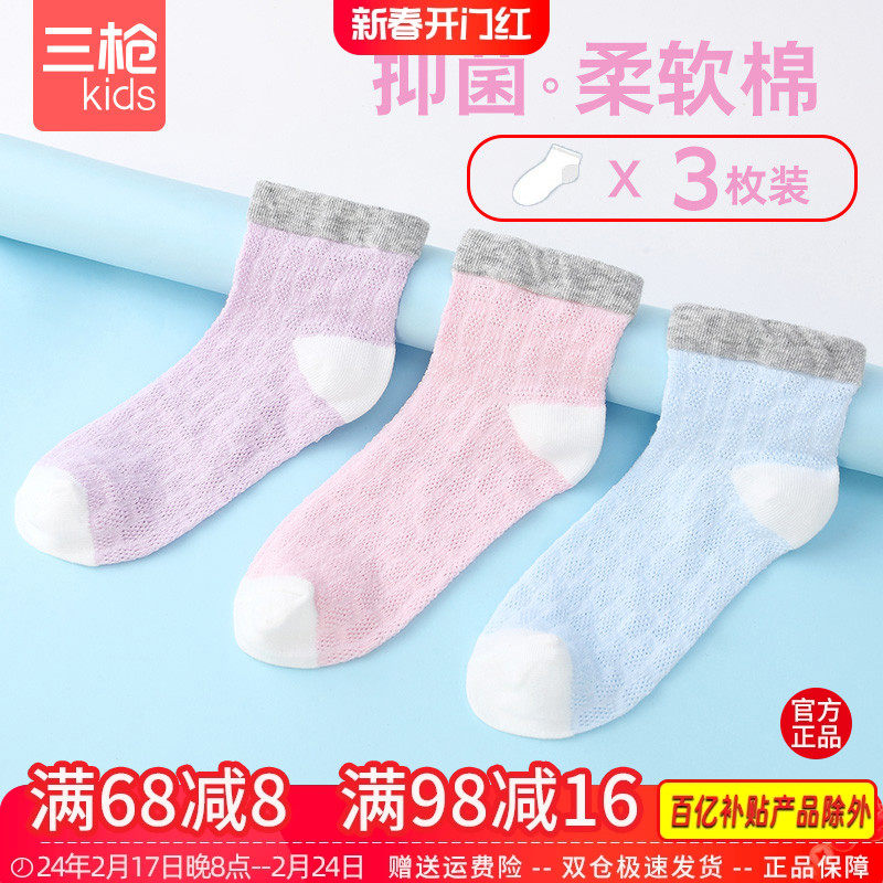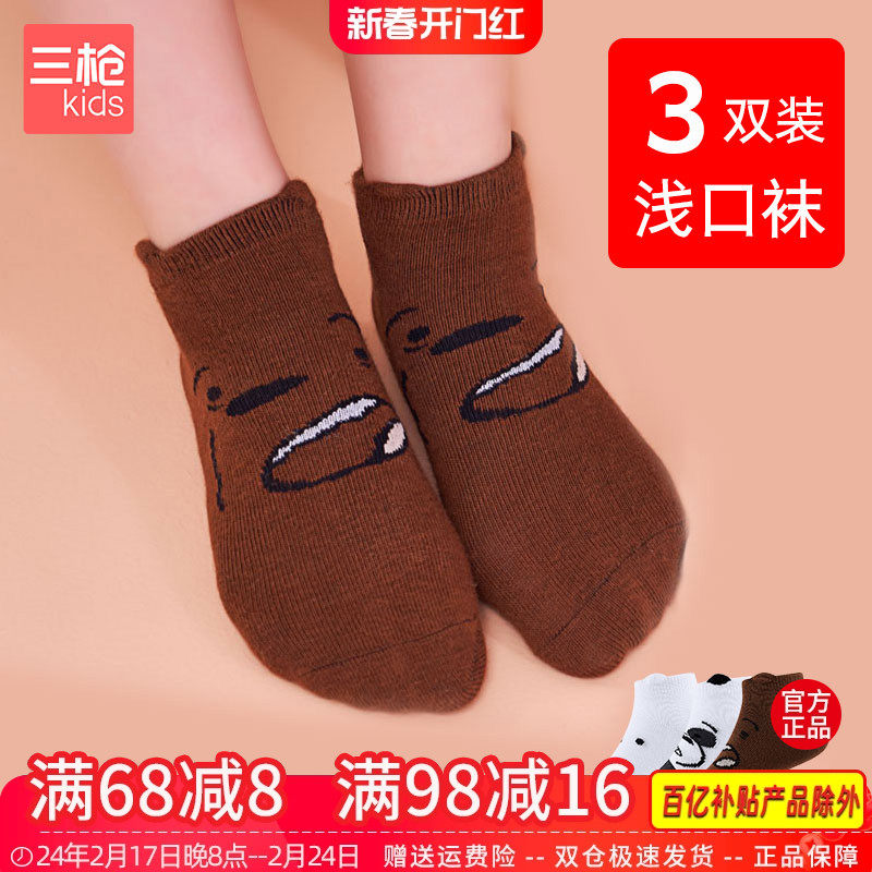 [3双装]三枪儿童袜子卡通男女中大童亲肤宝宝短筒浅口棉袜透气