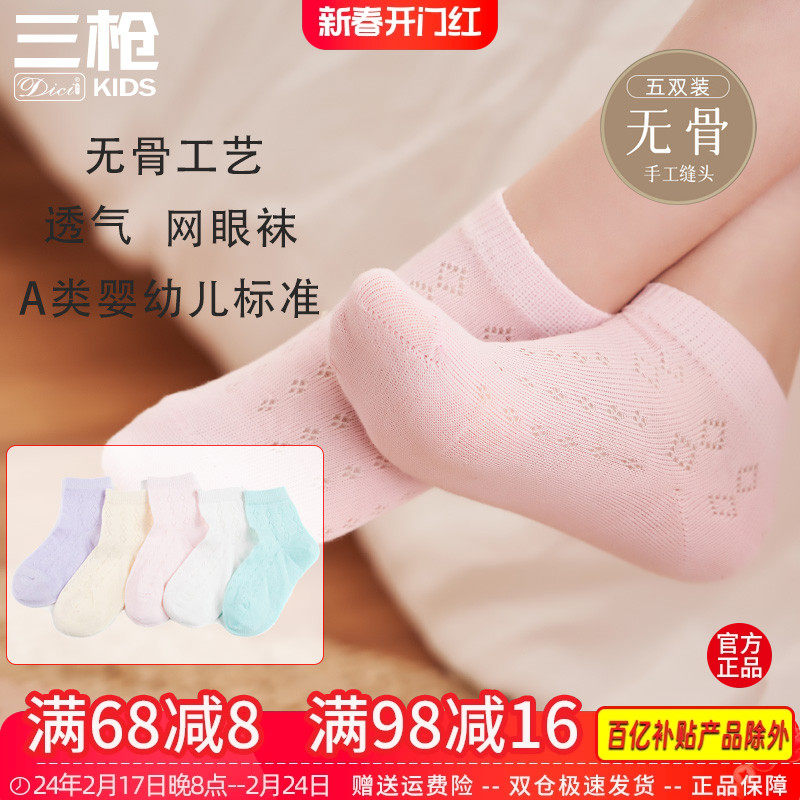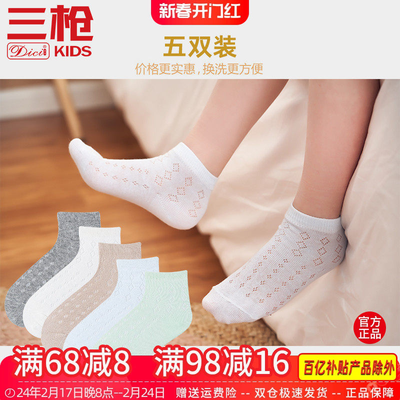三枪儿童袜子春夏季薄款宝宝网眼袜中筒薄棉袜透气5双无骨袜子