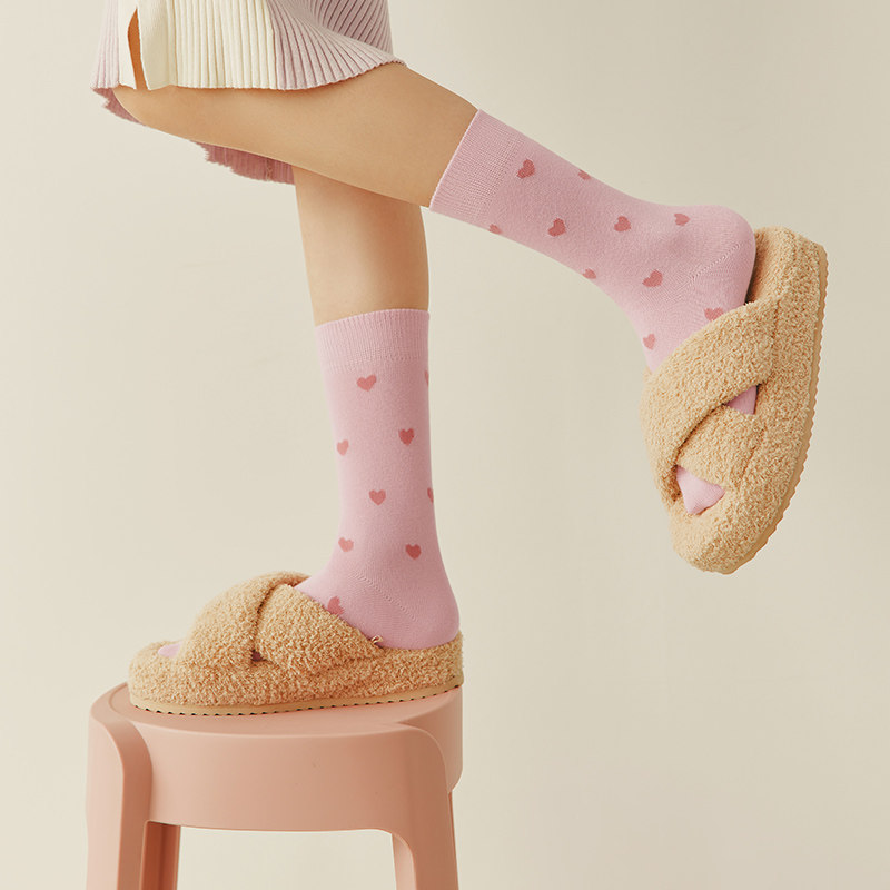 [3双]三枪袜子女长筒袜3A抗菌秋冬款可爱棉袜花边爱心女式无骨袜
