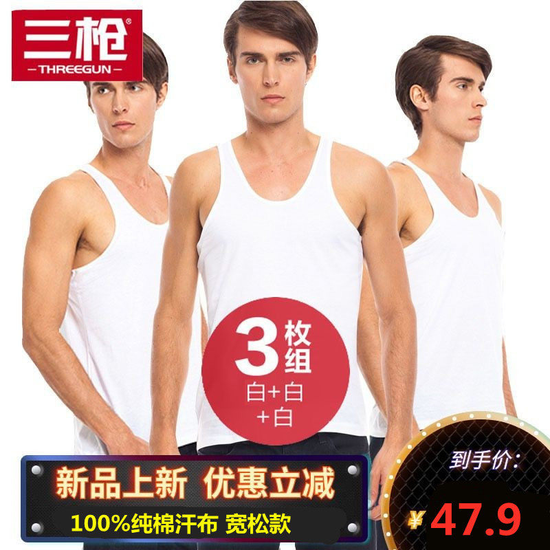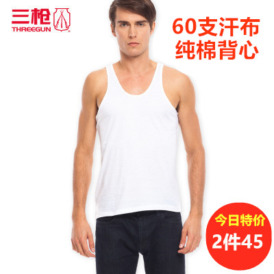 三枪背心男士纯棉舒肤精漂汗布男背心 男士全棉针织背心