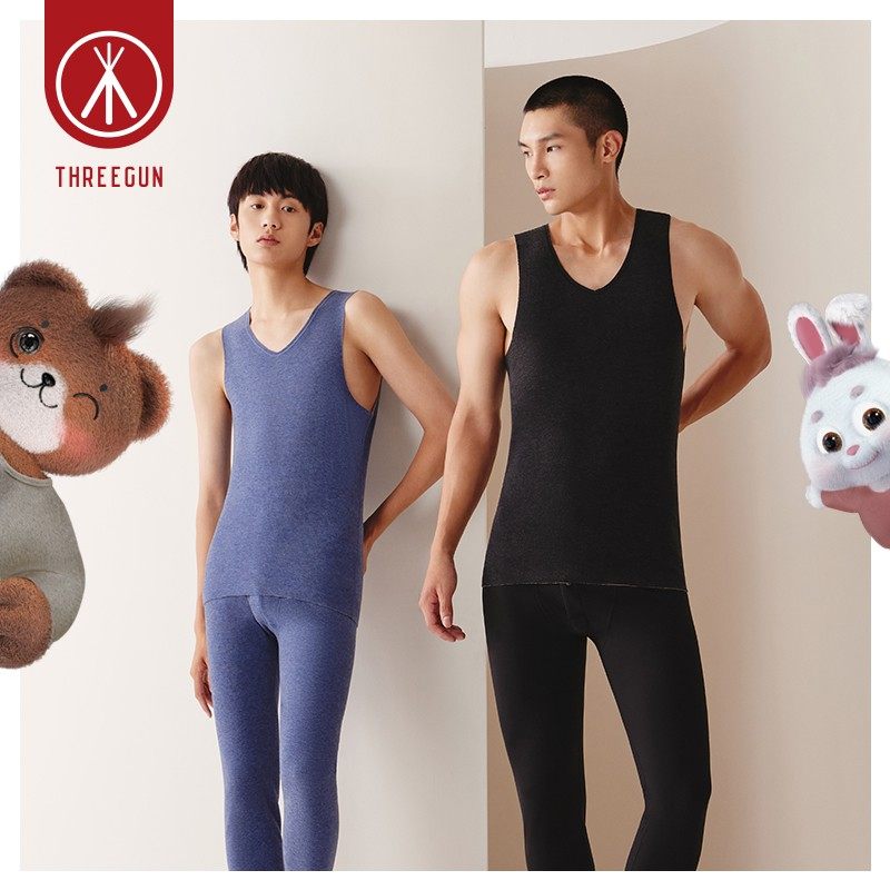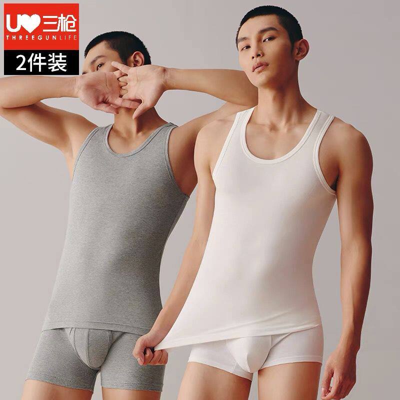三枪男背心莫代尔无痕2023年新秋冬冰丝内穿打底无袖健身运动汗衫