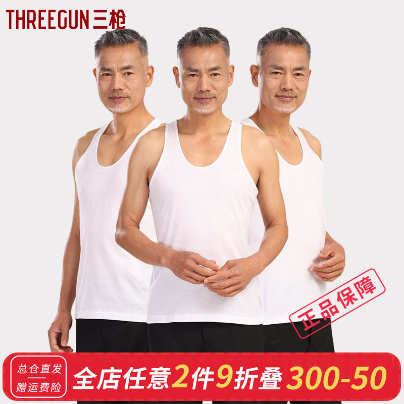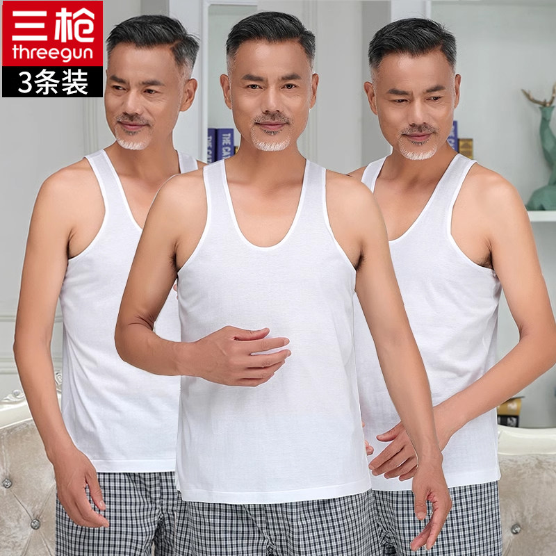 【3条装】三枪背心男士纯棉舒肤精漂汗布背心 中老年新疆棉白汗衫
