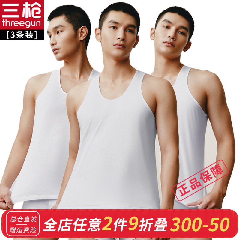 三枪男士背心莫代尔无痕春秋新运动健身速干无袖内搭大码打底汗衫