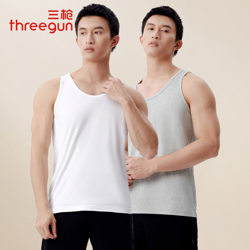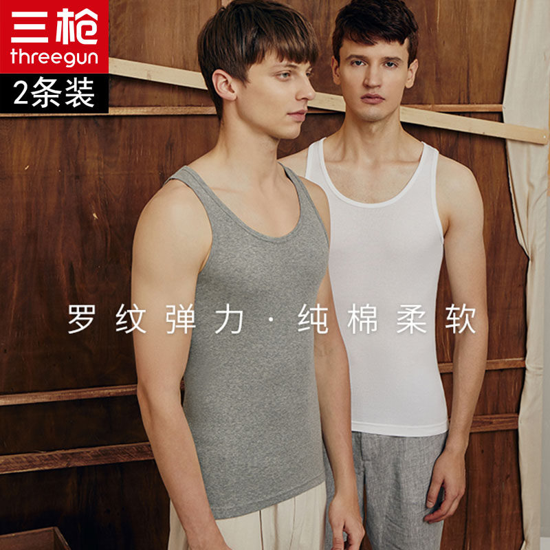 【二件装】三枪男士背心青年运动打底汗衫精梳棉无袖白色薄款夏季