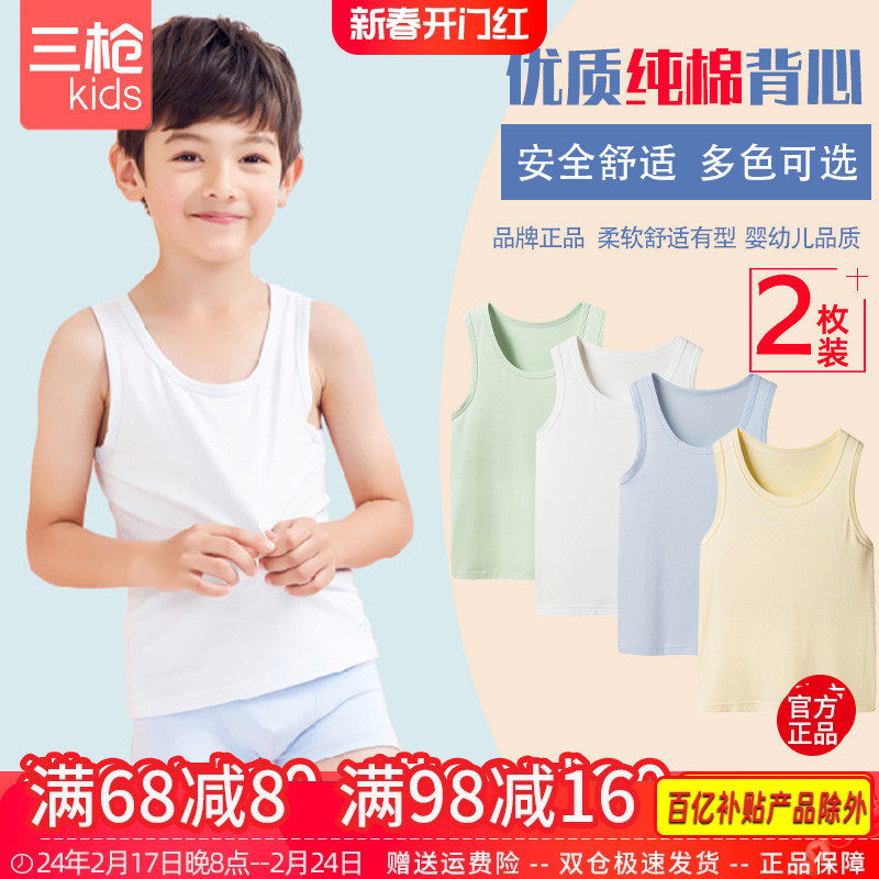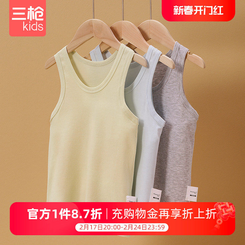 三枪儿童背心纯棉3A抑菌舒肤棉男孩薄款圆领男童女童打底内穿背心