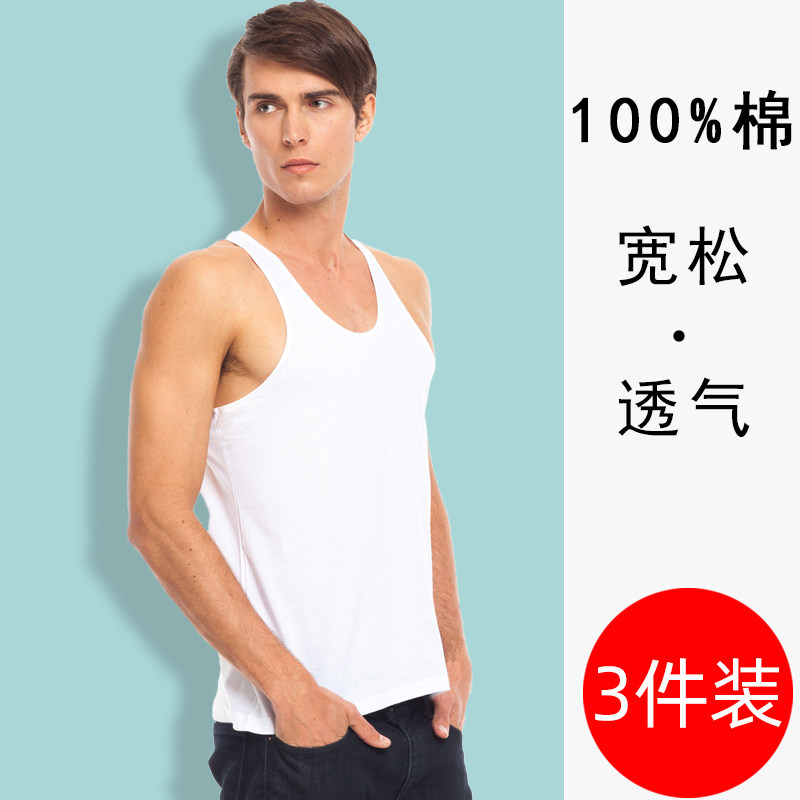3件装三枪背心男士纯棉薄款春夏中老年人宽松加大码全棉老头汗衫