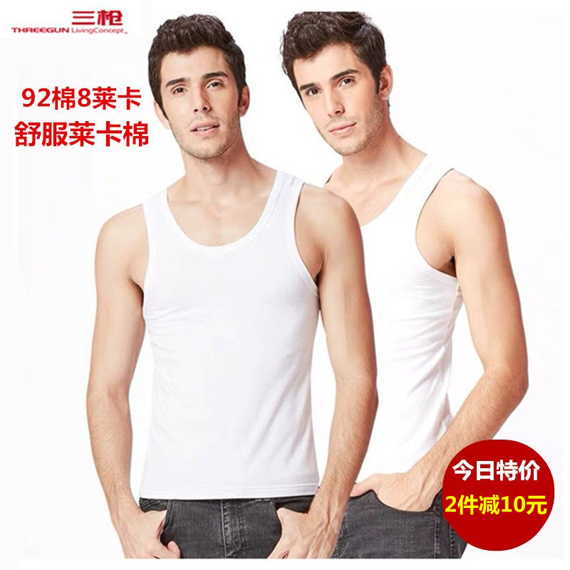 三枪高支莱卡棉透气吸汗全棉青年运动弹力修身男打底背心30611