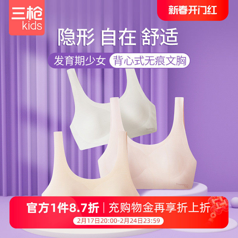 三枪儿童内衣女童无痕少女文胸莫代尔学生A类发育内衣防凸点背心