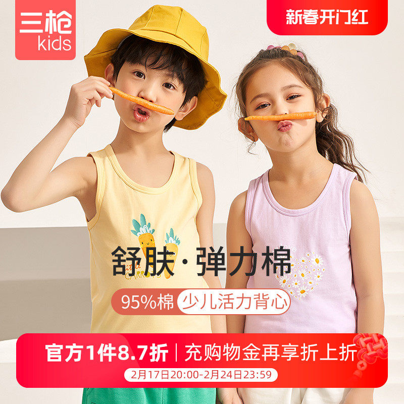 三枪儿童纯棉男女孩胖薄活动打底舒服弹力棉学生A类学生精品背心