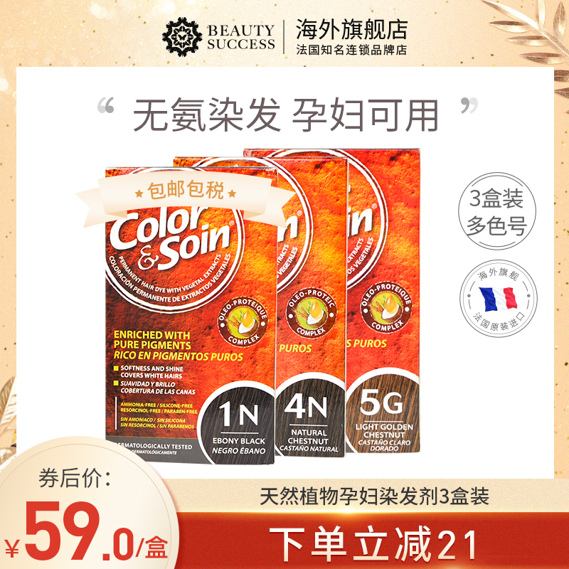 法国三橡树天然植物染发剂*3盒装 孕妇可用染发膏自己染发不伤发
