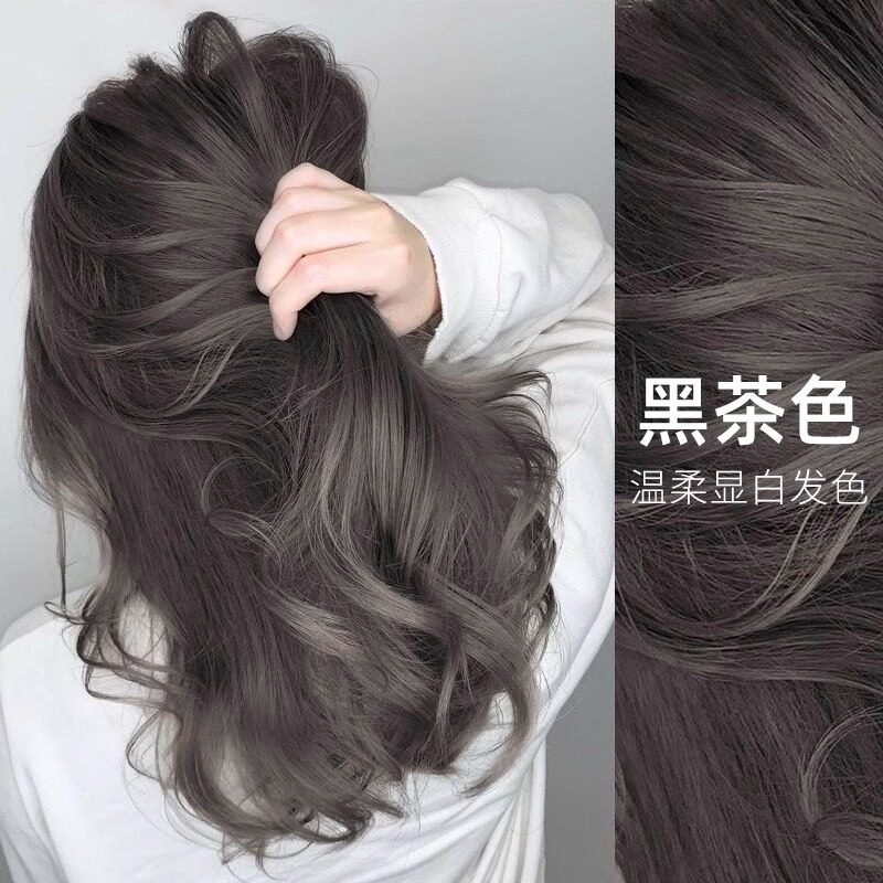 三橡树黑茶色染发剂纯植物天然无刺激正品冷棕色染发膏女遮盖白发