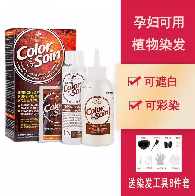 法国三橡树孕妇可用植物染发剂膏天然纯自己在家染头发遮盖白发