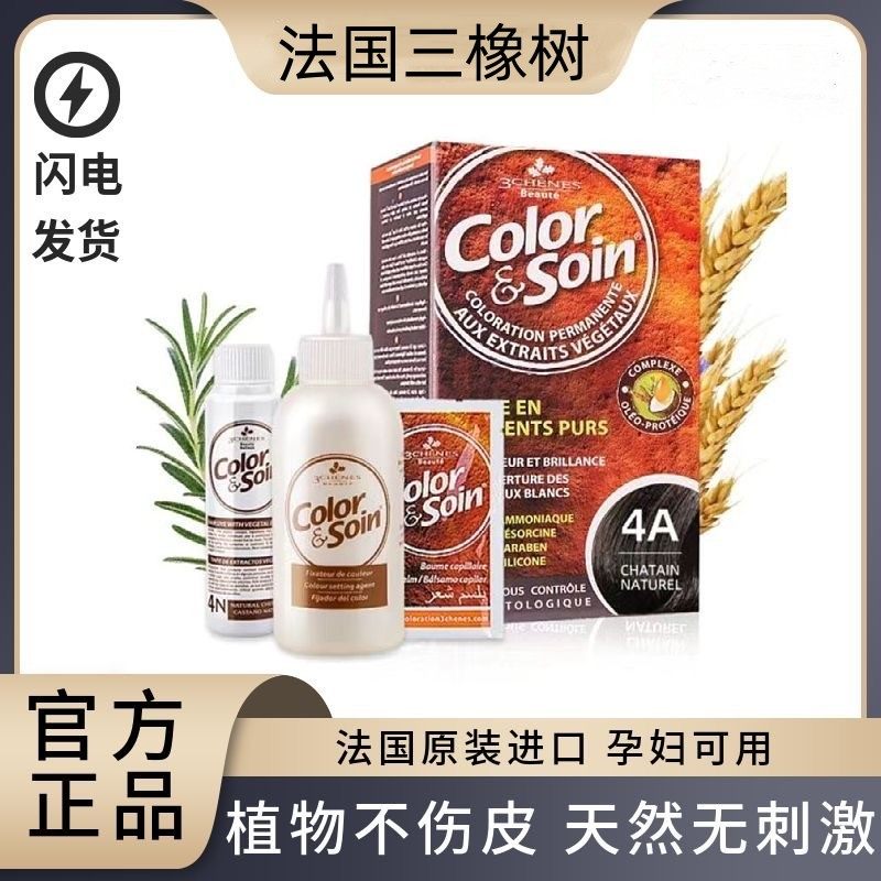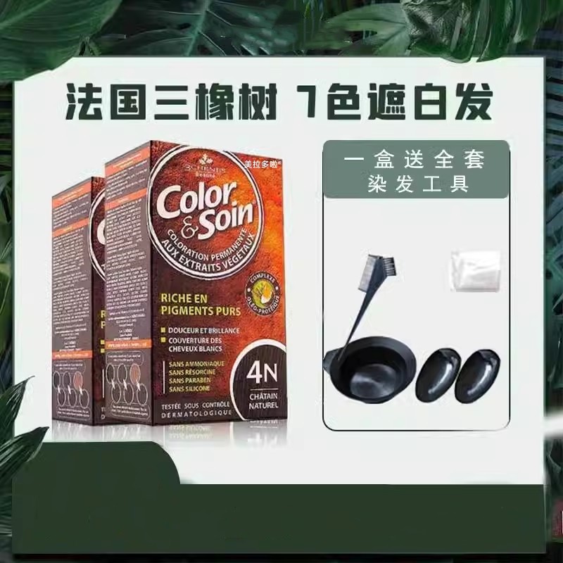 法国三橡树植物染发剂膏哺乳期孕妇可用遮盖白发2024流行色自己染
