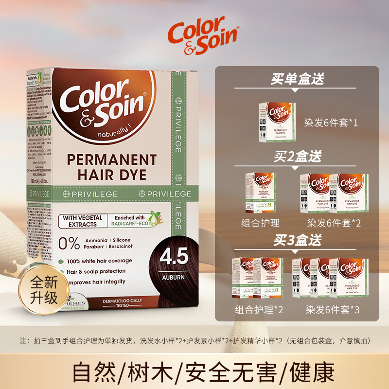 Color&Soin 三橡树新品植物有机抗氧化染护染发剂 LES 3 CHÊNES