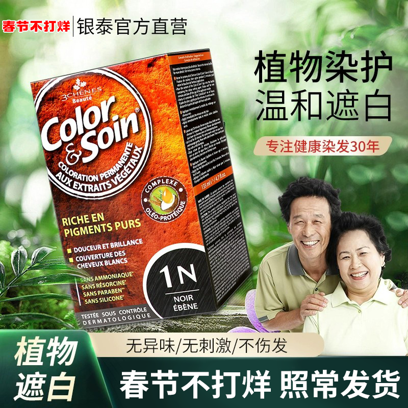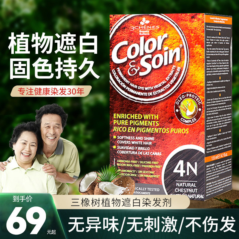 法国三橡树植物染发剂遮盖白发天然精华染发膏无刺激无氨上色自然