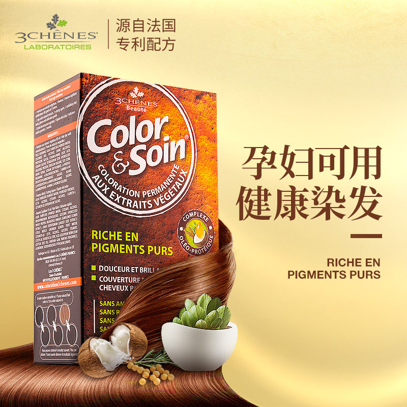 法国三橡树染发剂3CHENES纯植物天然染发膏无刺激哺乳期孕妇可用