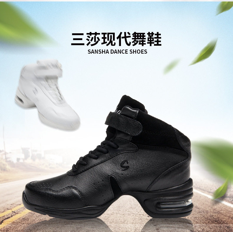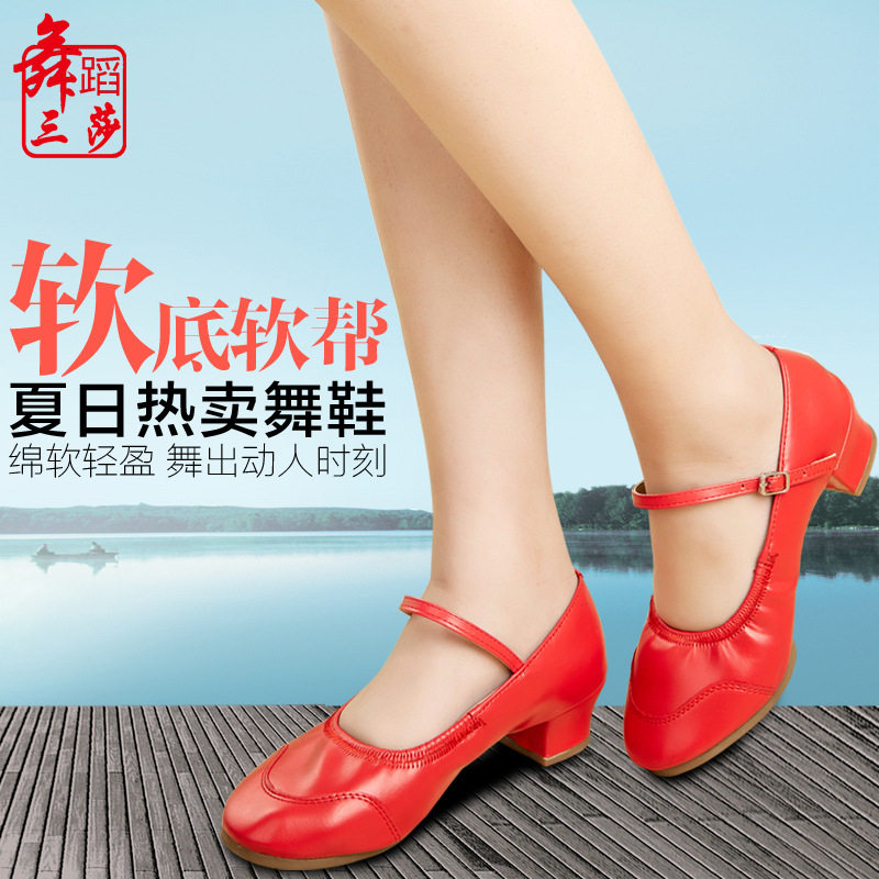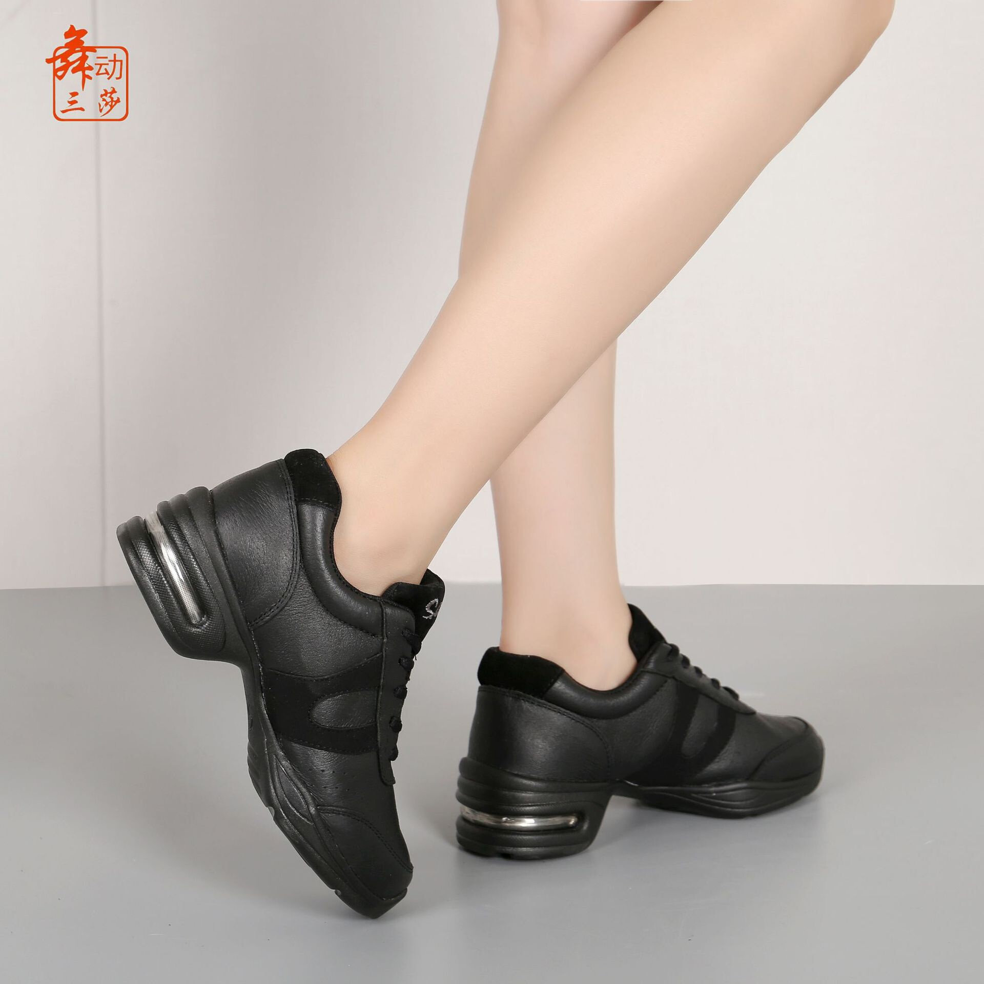 三莎新款舞蹈鞋春夏女广场舞鞋真皮软底现代跳舞鞋增高健身舞鞋