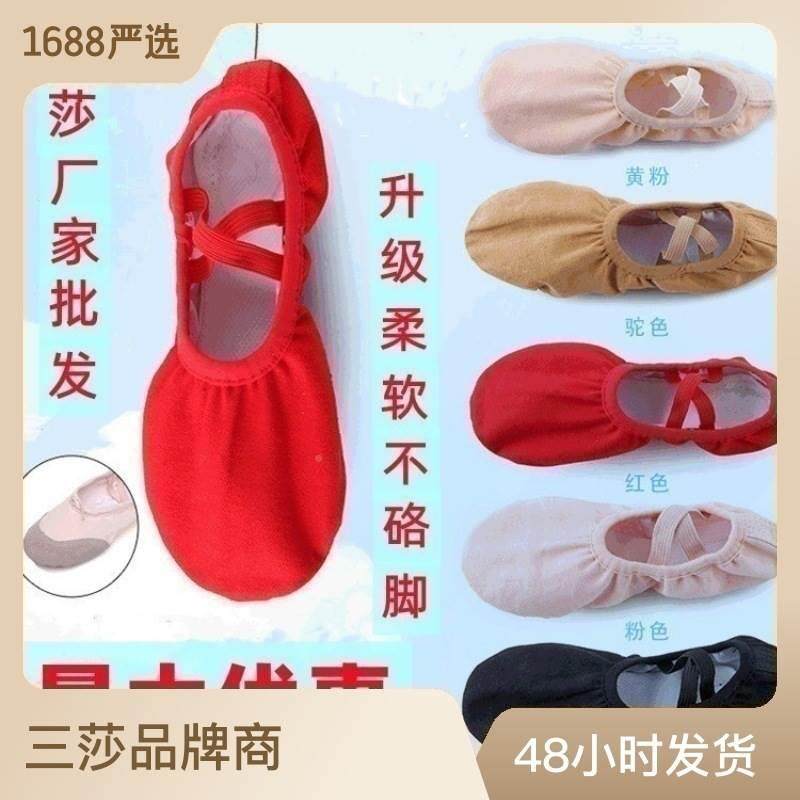 三莎正品形体鞋女童专业软底猫爪芭蕾瑜伽足尖练功红粉黑色舞蹈鞋