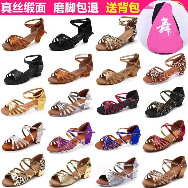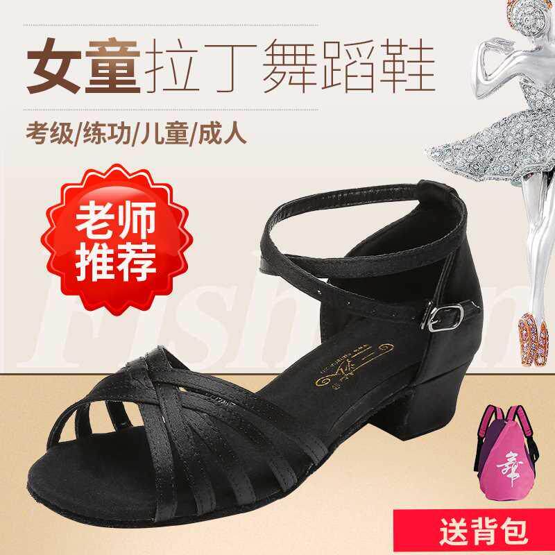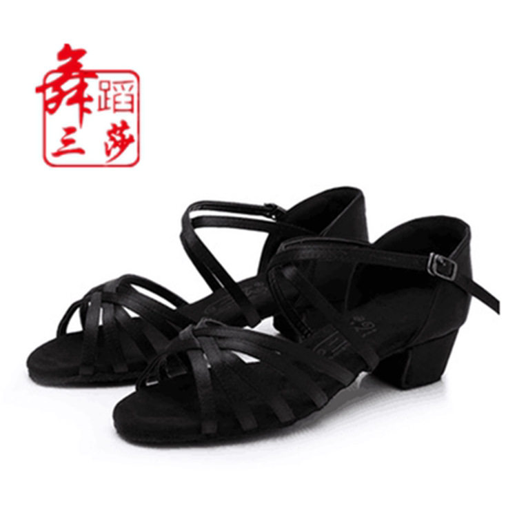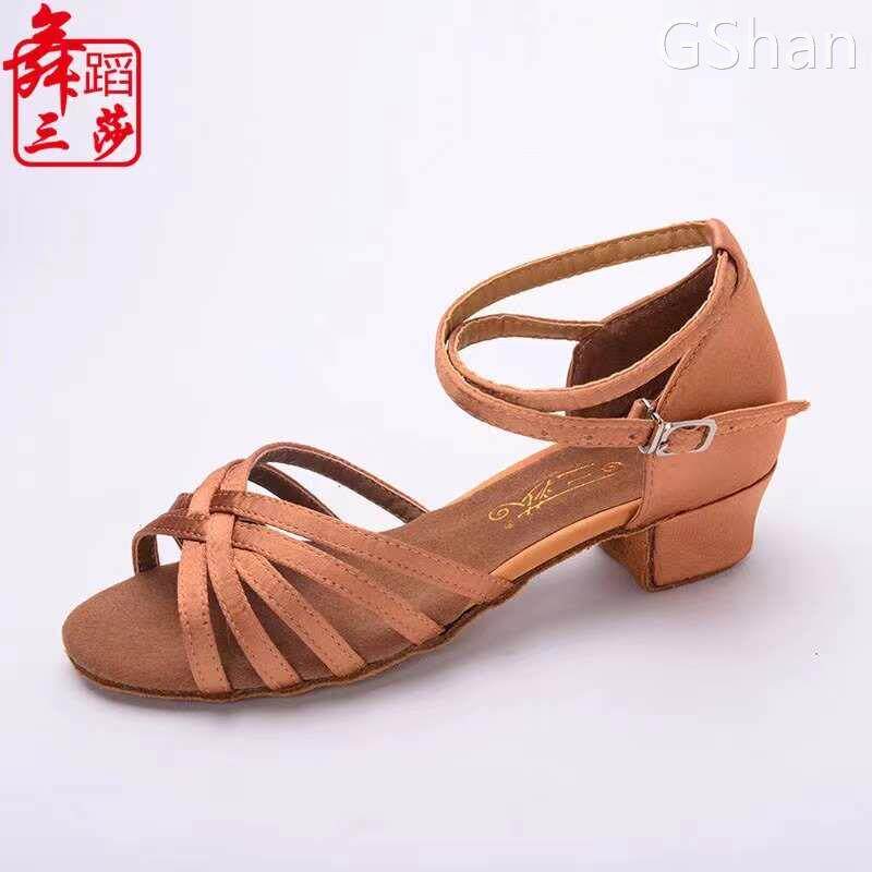 严选三莎正品厂家拉丁舞鞋女儿童中跟舞蹈鞋女孩初学者跳舞鞋成人