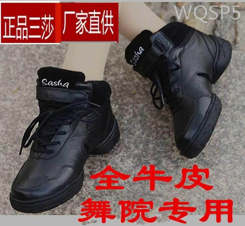 三莎舞蹈鞋女牛皮跳舞鞋增高爵士黑色软底真皮广场舞现代舞鞋正品