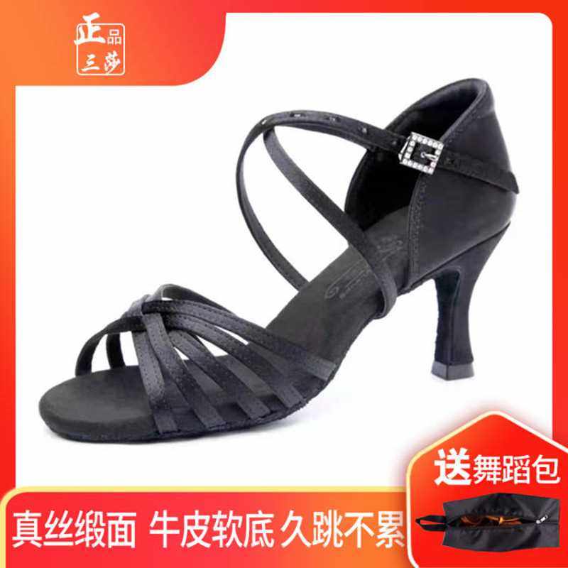 正品三莎专业拉丁舞鞋成年女士软底高跟跳舞鞋成人中跟拉丁舞蹈鞋