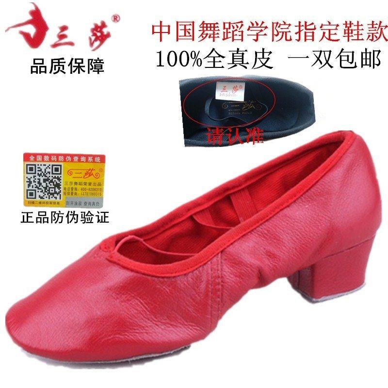 正品三莎舞蹈鞋女式增高爵士舞软底广场舞真皮跳舞鞋现代舞鞋水兵