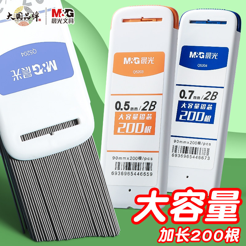 新品晨光大容量铅芯200根学生用2B铅笔芯0.5/0.7高聚合树脂铅芯