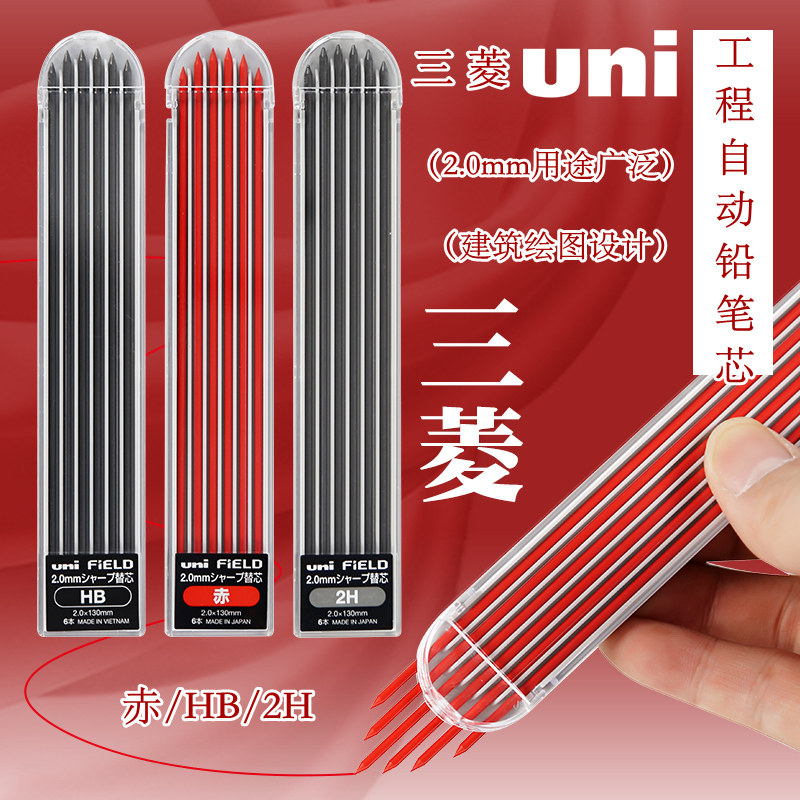 日本三菱2.0mm工程自动铅笔芯建筑用赤朱红色2B铅芯设计制图铅笔