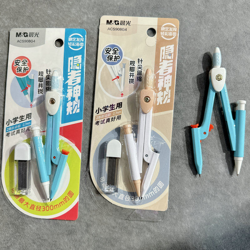 晨光小学生用2B考试圆规0.7铅笔芯粗自动铅笔圆规安全学生金属规
