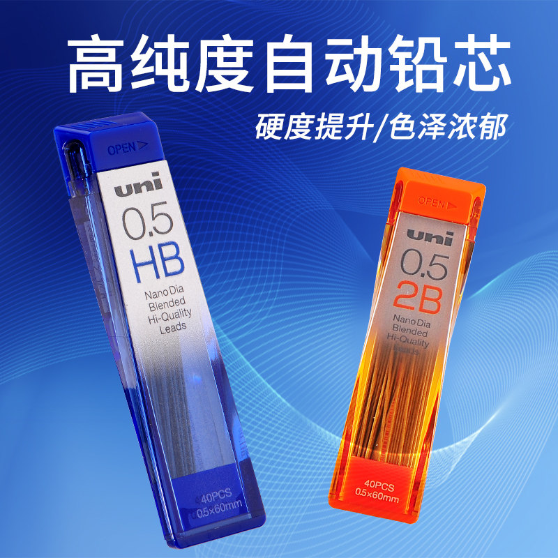 日本UNI三菱自动铅芯0.5mm活动铅笔替换笔芯小学生写不断HB/2B/2H