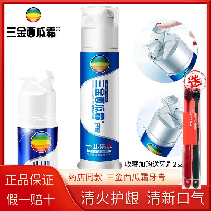 三金西瓜霜牙膏按压式清牙火清新口气除口臭家庭实惠装清洁去黄牙