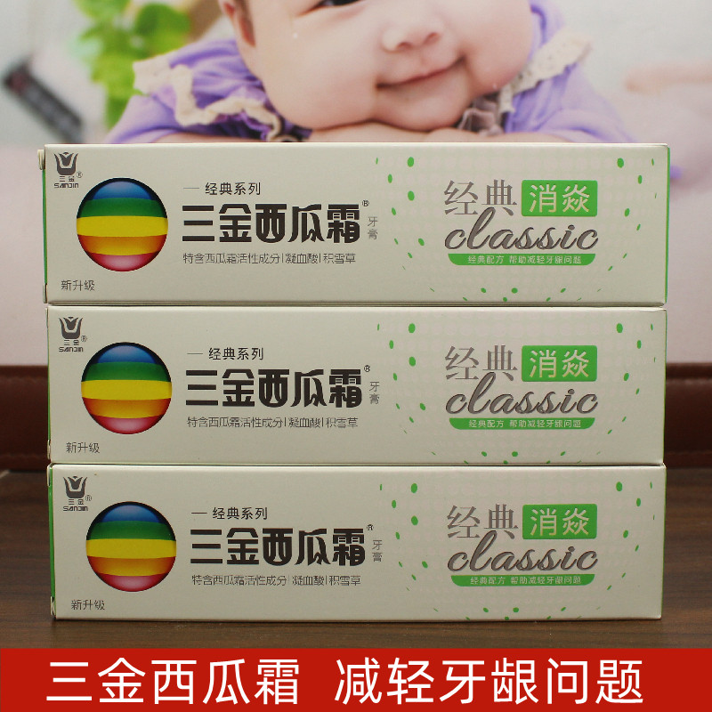 正品三金西瓜霜牙膏经典美白草本系列除牙渍薄荷味清新口气除口臭