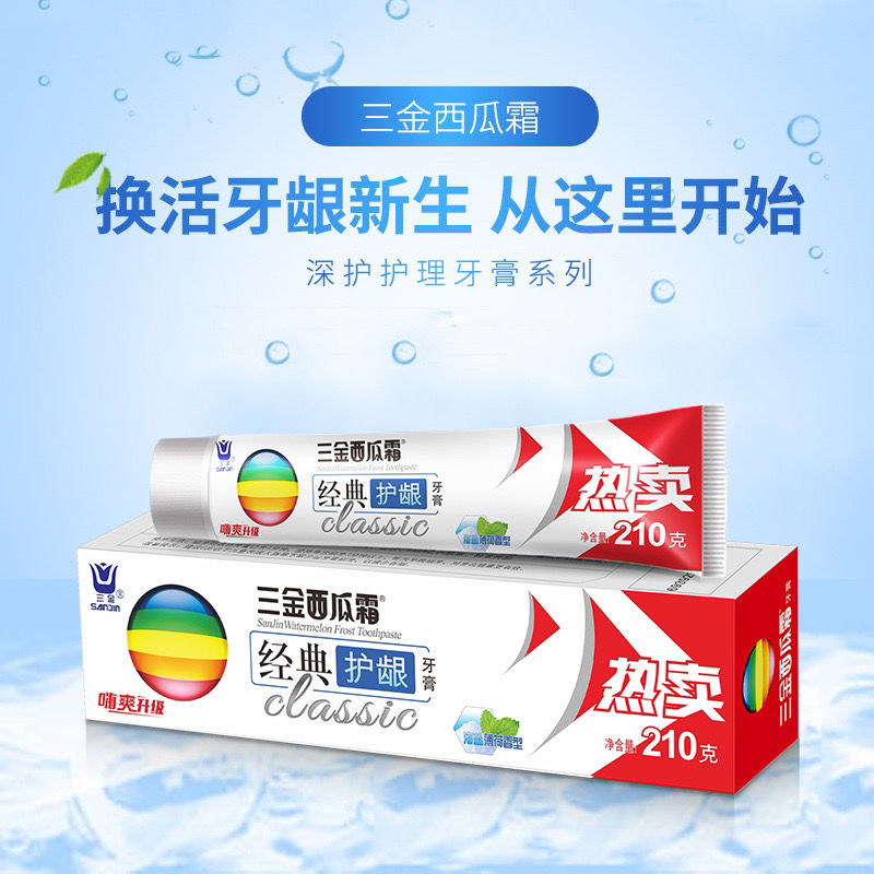 三金西瓜霜牙膏210g护龈固齿亮白牙齿薄荷清香持久清新口气家庭装
