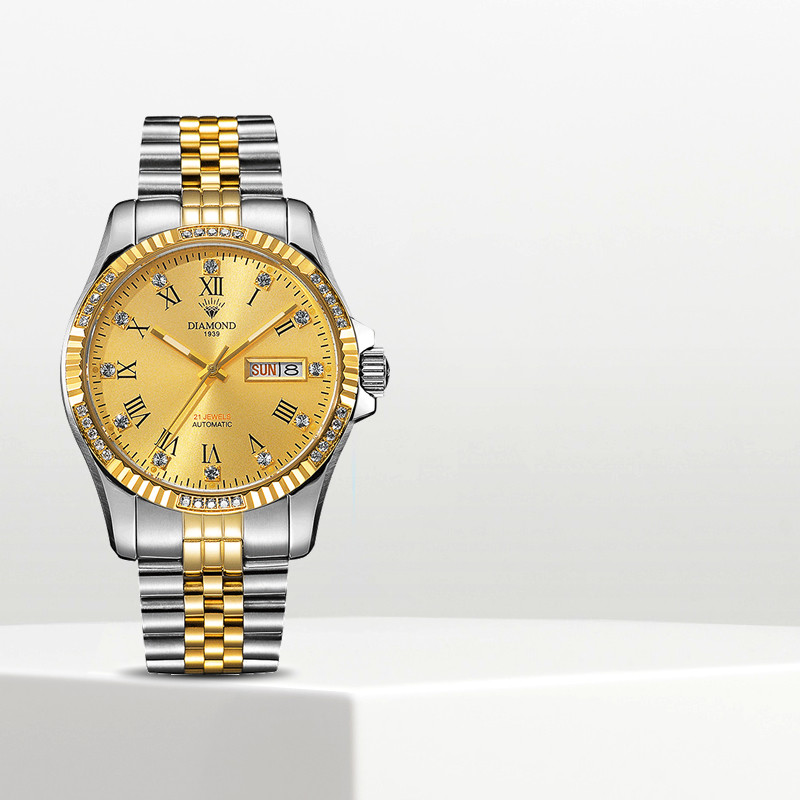 上海钻石牌手表男自动机械表防水夜光日历商务8031官方正品男表