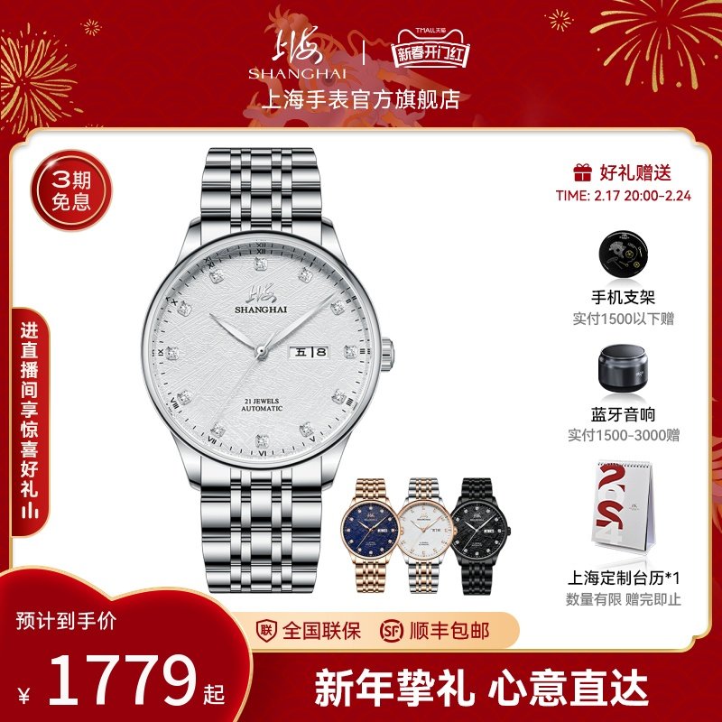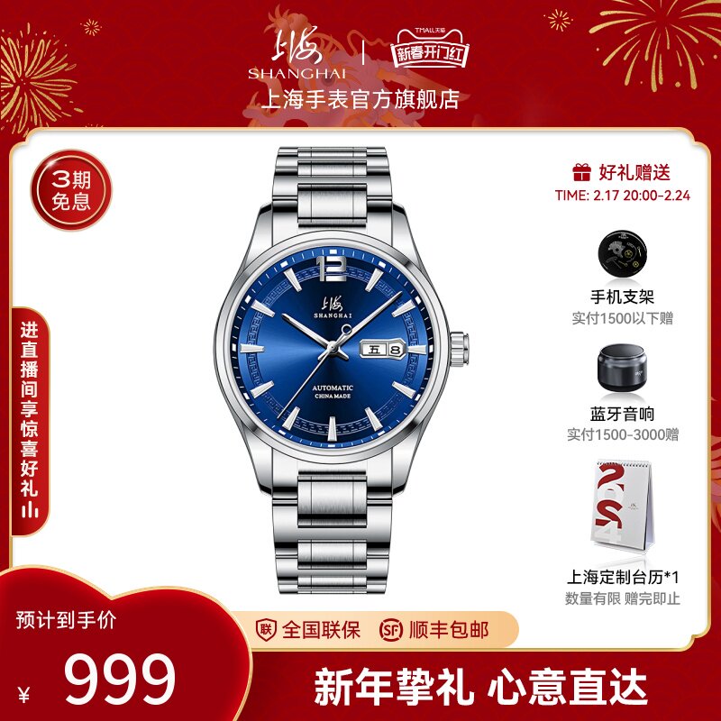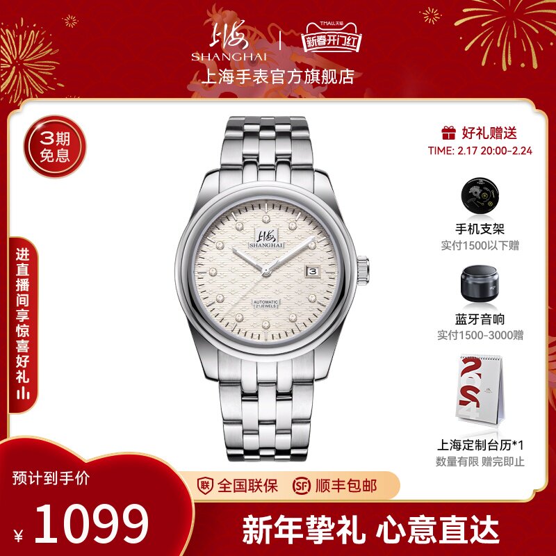 上海手表国民系列纪念款40毫米真钻男士自动机械钢带腕表情侣850